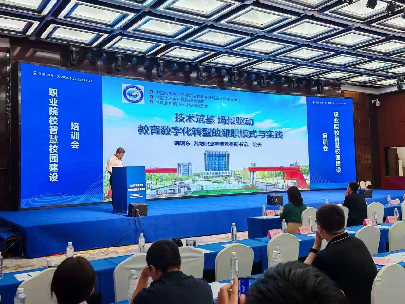 8月28日,由教育部职业教育与成人教育司指导、教育部教育管理信息中心主办的2025年职业院校智慧校园建设培训会(第三期)在郑州举行。来自教育部职成司、教育部信息中心、清华大学的领导和专家及全国27个省(自治区、直辖市)192所中高职院校的300余名代表参会,学院院长韩瑞东受邀在会上作了经验分享。