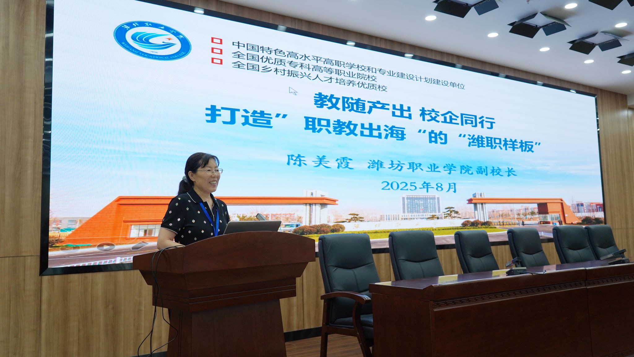 会上,陈美霞向参会院校和企业代表作了题为《教随产出 校企同行 打造“职教出海”的“潍职样板”》专题发言,介绍了beat365的办学情况,以“教随产出 校企同行”为切入点,强调以产业需求为导向,强化校企深度合作,全力推进服务企业“走出去”、职业教育“走出去”。发言围绕依托援外项目,“借船出海”扬优势、服务企业“走出去”,“同船出海”扎根基、服务“一带一路”共建,“造船出海”树品牌三个方面分享了beat365“职教出海”的主要做法及取得成效,并提出了面临的挑战与建议。