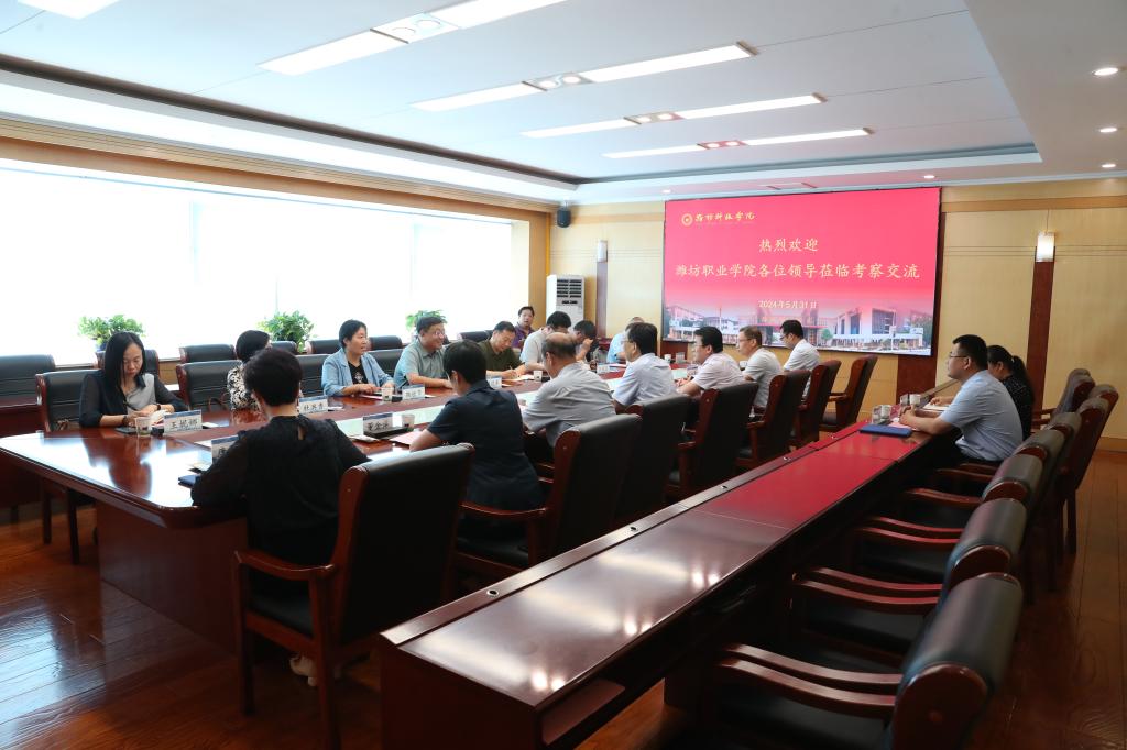 5月31日,学院党委副书记韩瑞东带队到潍坊科技学院考察交流。党委副书记贺志强,党委委员、宣传部部长鞠桂芹及相关处室负责同志参加活动。潍坊科技学院校长魏华中,副校长刘相法,党委副书记苗春龙及相关处室负责同志参与座谈交流。 魏华中对来访客人表示欢迎,他首先介绍了学校的基本情况,并对学校办学理念、办学规模、专业发展等方面的经验做了详细介绍。 韩瑞东对潍坊科技学院近年来的高质量发展给予了高度赞赏,尤其是体制机制创新、...更多 -