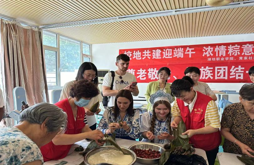 6月6日下午,学院联合奎文区潍州路街道黄家社区共同开展“校地共建迎端午 浓情粽意暖民心”端午节特别活动。来自加纳、俄罗斯、巴基斯坦等国家的21名留学生来到黄家社区锦年华养老服务中心参与活动。 活动伊始,老师介绍了端午节的来历,让留学生们了解赛龙舟、插艾草、包粽子、熏艾草等一系列端午活动和习俗,学习端午节相关的古诗,了解中国传统文化民俗。接着,留学生们为社区老人带来了精彩的节目:来自学院“未来非洲”项目的加纳学生们齐声合唱中国民歌《...更多 -