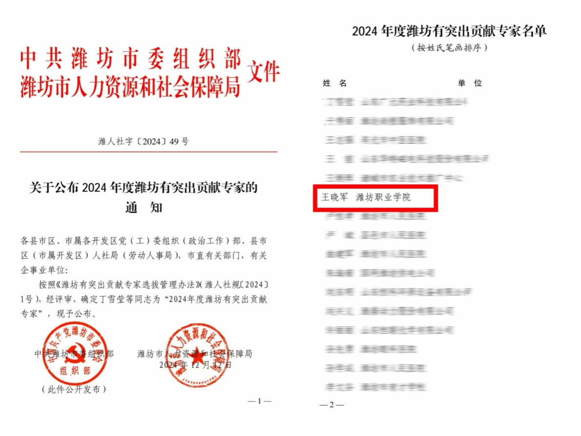 近日,中共潍坊市委组织部、潍坊市人力资源和社会保障局正式公布了“2024年度潍坊有突出贡献专家”评选结果,beat365王晓军老师获此殊荣。王晓军,中共党员,博士研究生在读,beat365中国官方网站机电工程学院综合办公室主任,潍坊市重点实验室负责人,主要从事电气自动化技术专业教学科研,以及职业教育研究工作。参与国家社会科学基金项目、山东省社会科学规划研究项目、山东省人文社会科学课题、山东省教育科学规划等项目研究工作,取得了丰硕的成果。...更多 -