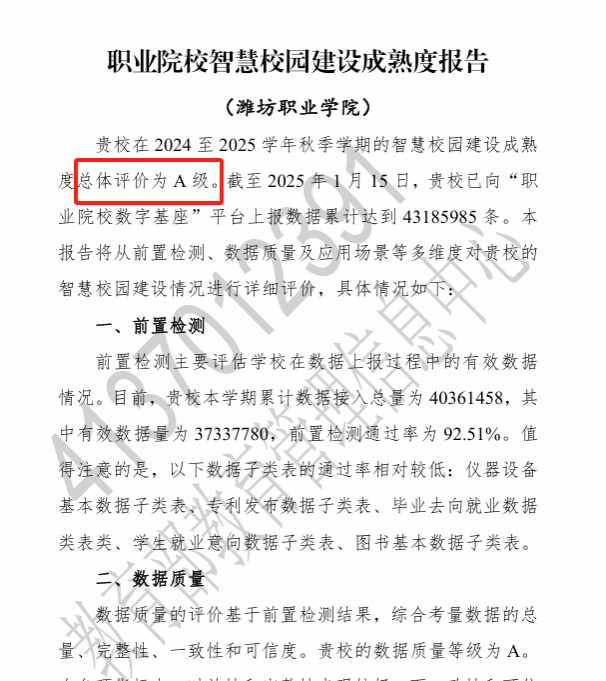 学院在全国职业院校智慧校园建设成熟度评估中再获A等级