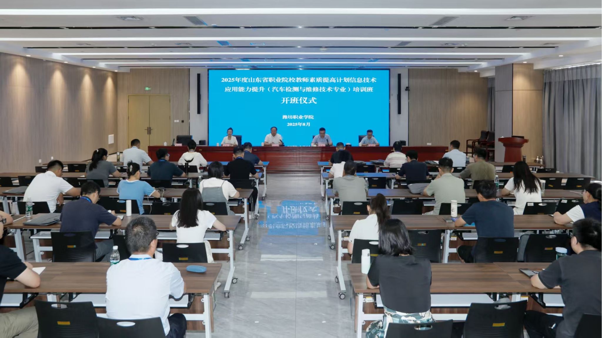 8月12日上午, 2025年度山东省职业院校教师素质提高计划信息技术应用能力提升(汽车检测与维修技术专业)培训开班仪式在学院滨海校区举行。学院党委委员、副院长付一明,党委委员、组织人事处(离退休工作处)处长于涛,教师工作部与汽车工程学院主要负责同志及来自全省高职院校的30名中青年骨干教师参加活动。开班仪式上,付一明代表学院致辞,对参训教师表示欢迎,向长期关心支持职业教育发展的省教育厅、各兄弟院校及合作企业表示感谢。...更多 -