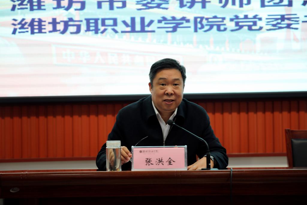 11月23日上午,潍坊市委副书记、市长李宽端来到学院滨海校区宣讲党的十九大精神,与广大师生员工交流学习体会。学院党委书记张洪全主持报告会。潍坊市政府秘书长宋均圻,学院党委副书记宋桂言,副院长赵君堂、贺志强,纪委书记郭晓辉出席报告会。全院副科级以上干部、教师及学生代表300余人认真聆听了报告。 李宽端紧紧围绕习近平新时代中国特色社会主义思想这条主线,结合潍坊实际,联系国内国际形势,深入浅出、系统阐释了党的十九大精神。...更多 -