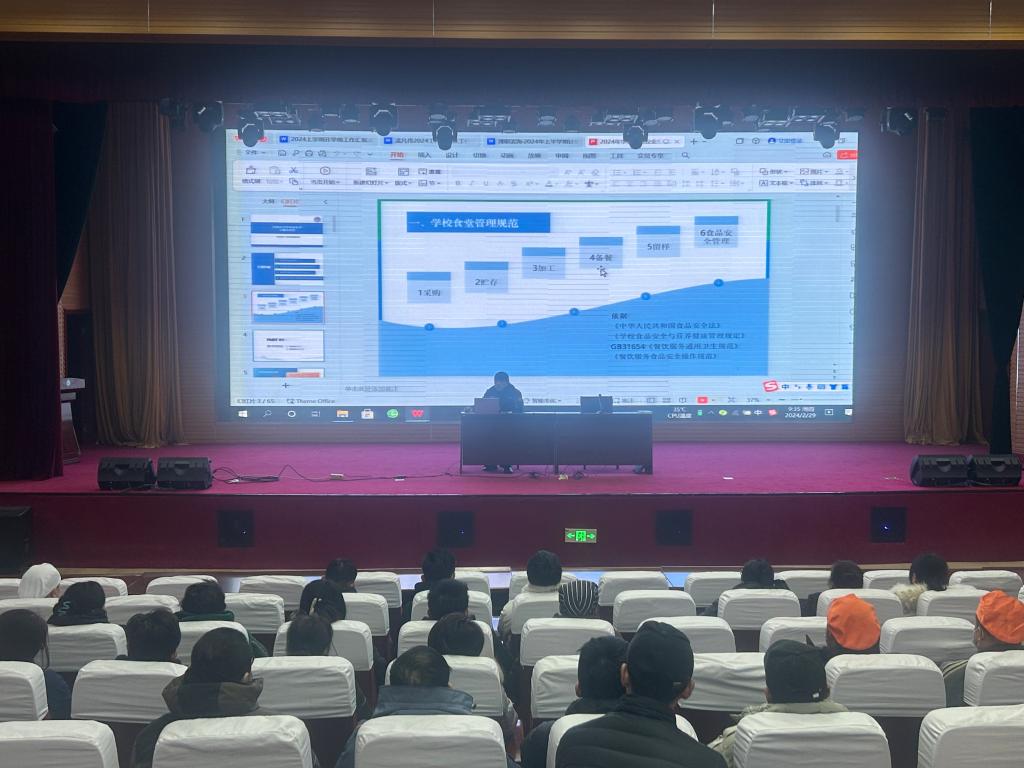 2月29日上午,学院邀请滨海区综合行政执法局综合执法一大队魏兰琼副队长到滨海校区进行新学期食品安全知识培训。饮食服务中心、各餐厅200多名从业人员参加培训。 培训会上,魏兰琼围绕采购、贮存、加工、备餐、留样、餐具消毒、食品环境卫生、个人卫生、食品安全管理等方面,就如何做好当前校园食品安全工作作了详细讲解,并提出了明确工作要求。 饮食服务中心负责同志就做好新学期食品安全工作作了强调:一是思想认识再提高。要进一步提高对食品安全工作重要性的认识,...更多 -