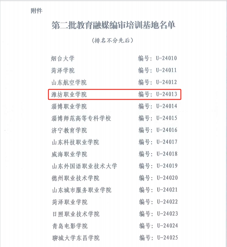 4月10日,山东教育融媒体联盟、山东教育舆情研究院发布《关于公布第二批教育融媒编审培训基地名单的通知》,beat365作为潍坊市唯一高校,成功获批山东省教育融媒编审培训基地。 山东教育融媒体联盟于2021年由山东省教育厅批准成立,目前有成员单位226家,包括高校、16市教育(教体)局,联盟计划在全省教育系统开展融媒编审证书培训工作,采取线上线下相结合的方式,对全省教育新闻宣传队伍进行科学化、规范化和常态化培训。线上通过“...更多 -