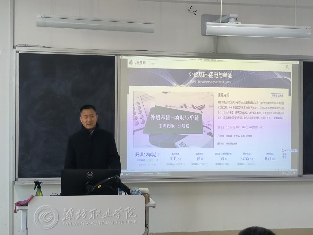 为加强在线精品课程建设与申报工作,推进课程教学改革,提高人才培养质量,11月23日,信息工程学院邀请国家精品在线开放课程主持人张启途为全院教师做了精彩的在线课程建设专题讲座。 张启途老师以自己的职业教育国家精品在线开放课程《外贸基础——函电与单证》为例,结合长期的教学实践和在线精品课程建设经验,从总体要求切入,围绕什么是精品在线课程、如何建设在线精品课程、如何提高申报获批率三个方面进行了深入浅出...更多 -