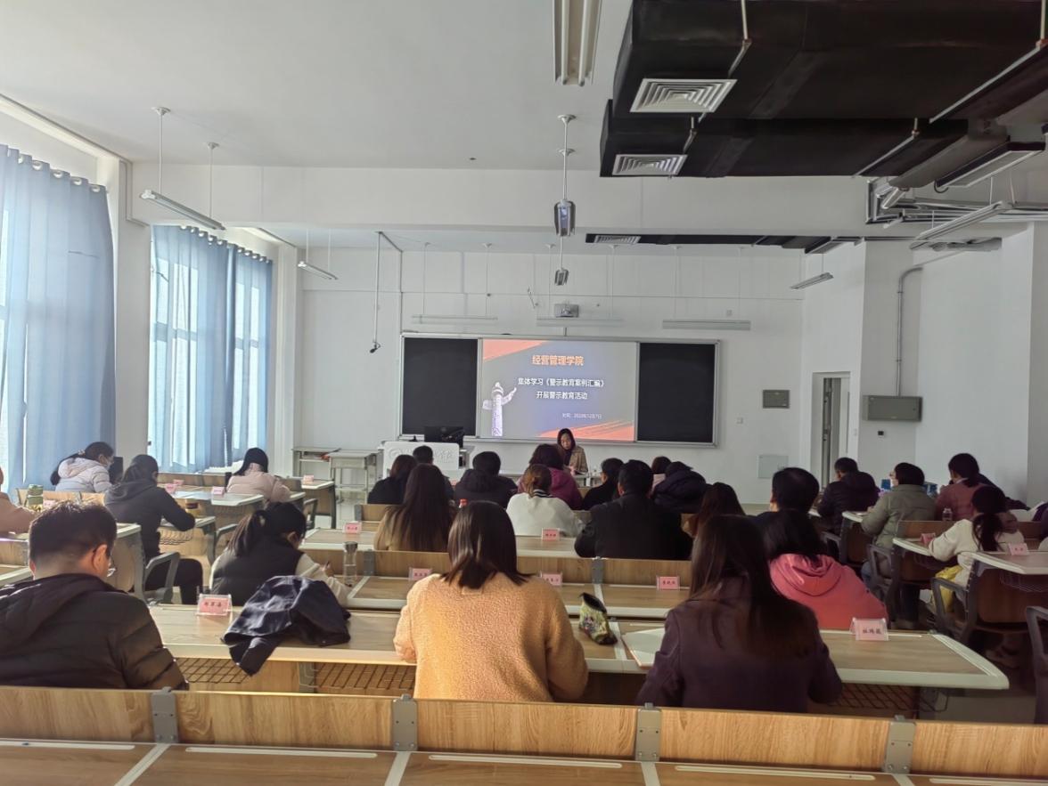为不断深化党风廉政建设和反腐败工作,将廉洁文化、廉洁教育融入校园文化,深植清廉基因,进一步提高党员干部的宗旨意识和纪律观念,12月7日下午,经营管理学院党总支在智泽2号楼B312开展新时代廉洁文化建设主题活动。 会上,全体教职工集中学习了学院纪委编发的《警示教育案例汇编》(2023年第1期)和警示教育视频,并对违法违纪案例产生的原因、对个人和家庭造成的负面影响进行深度交流,引导广大教职工要引以为戒,严守...更多 -