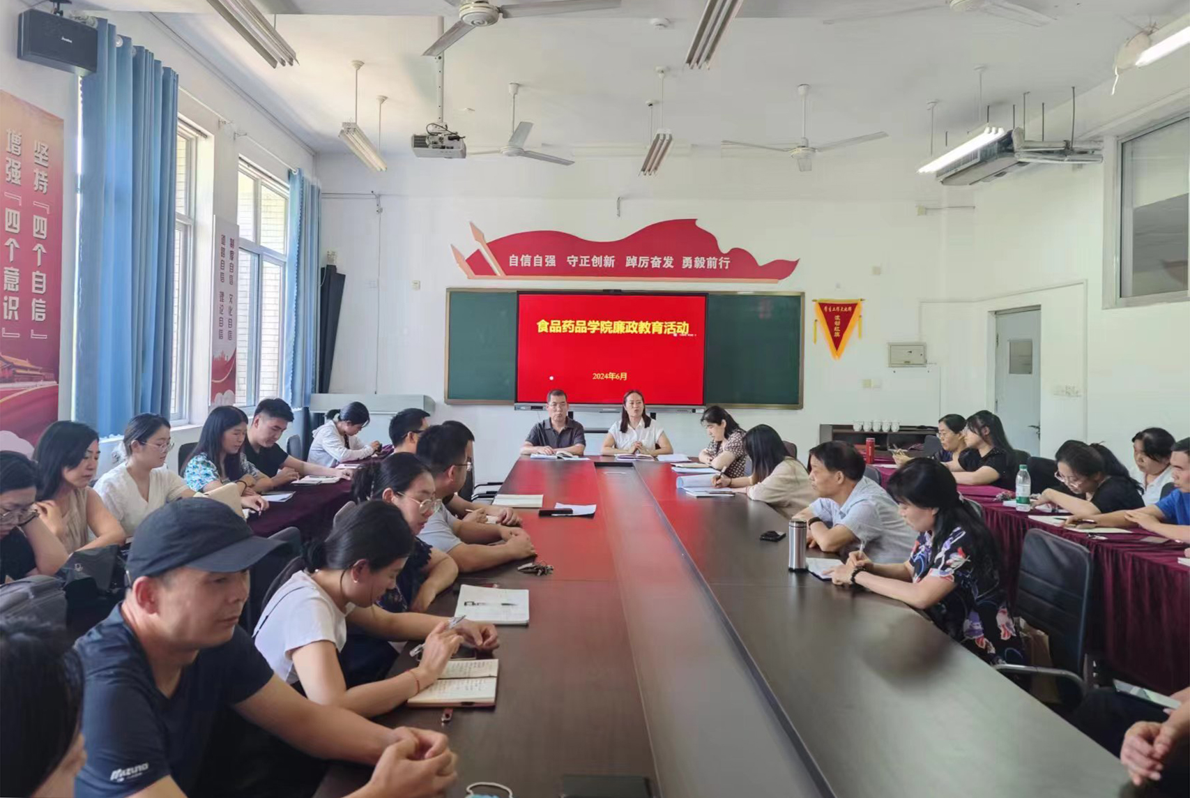 为进一步强化教师纪律规矩和廉洁自律意识,6月27日下午,食品药品学院在惠泽1号楼A103会议室运用典型案例开展廉政教育活动,食品药品学院党总支负责同志主持,部门全体教师参会。 会上,食品药品学院党总支负责同志带领教师集中学习了《警示教育案例汇编》,通过真实案例为大家敲响廉洁警钟,增强纪律意识和规矩意识。他提醒广大教师时刻保持清醒头脑,加强自律、洁身自爱、防微杜渐,自觉抵制各种腐朽思想的侵蚀,筑牢拒腐...更多 -