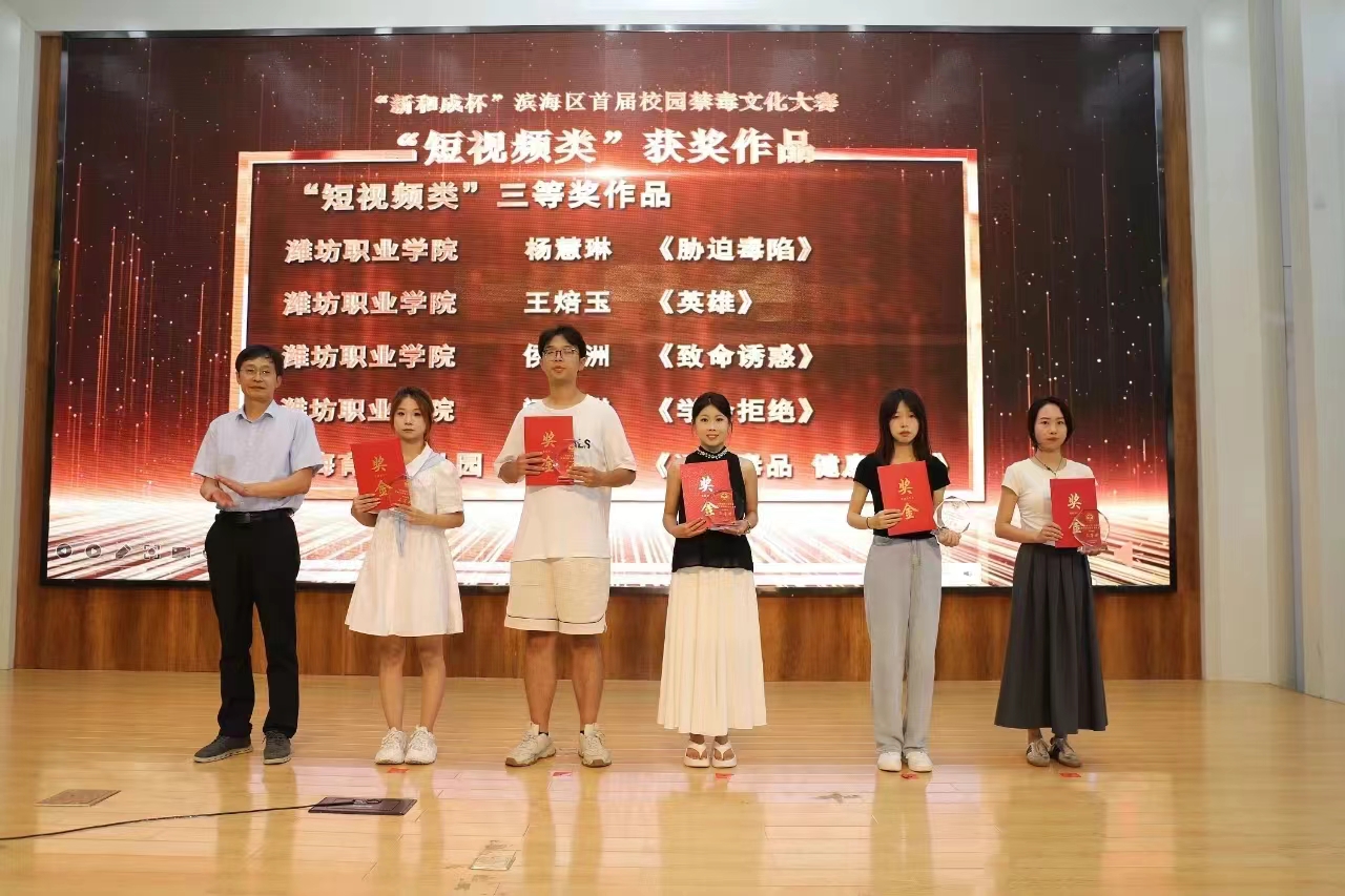 6月26日,由滨海区禁毒委员会主办,滨海区大学园管理办公室、滨海区教育分局、滨海区公安分局、滨海区融媒体中心协办的“新和成杯”滨海区首届校园禁毒文化大赛颁奖典礼在山东海事职业学院隆重举行。beat365受邀参加颁奖典礼,荣获二等奖1项、三等奖4项。 本届校园禁毒文化大赛旨在提高防范青少年药物滥用意识,扎实推进全环境立德树人建设,全面筑牢禁毒人民防线。大赛共收到短视频类作品69部,经过激烈角逐,最终选出一等奖1项、二等奖3项、...更多 -