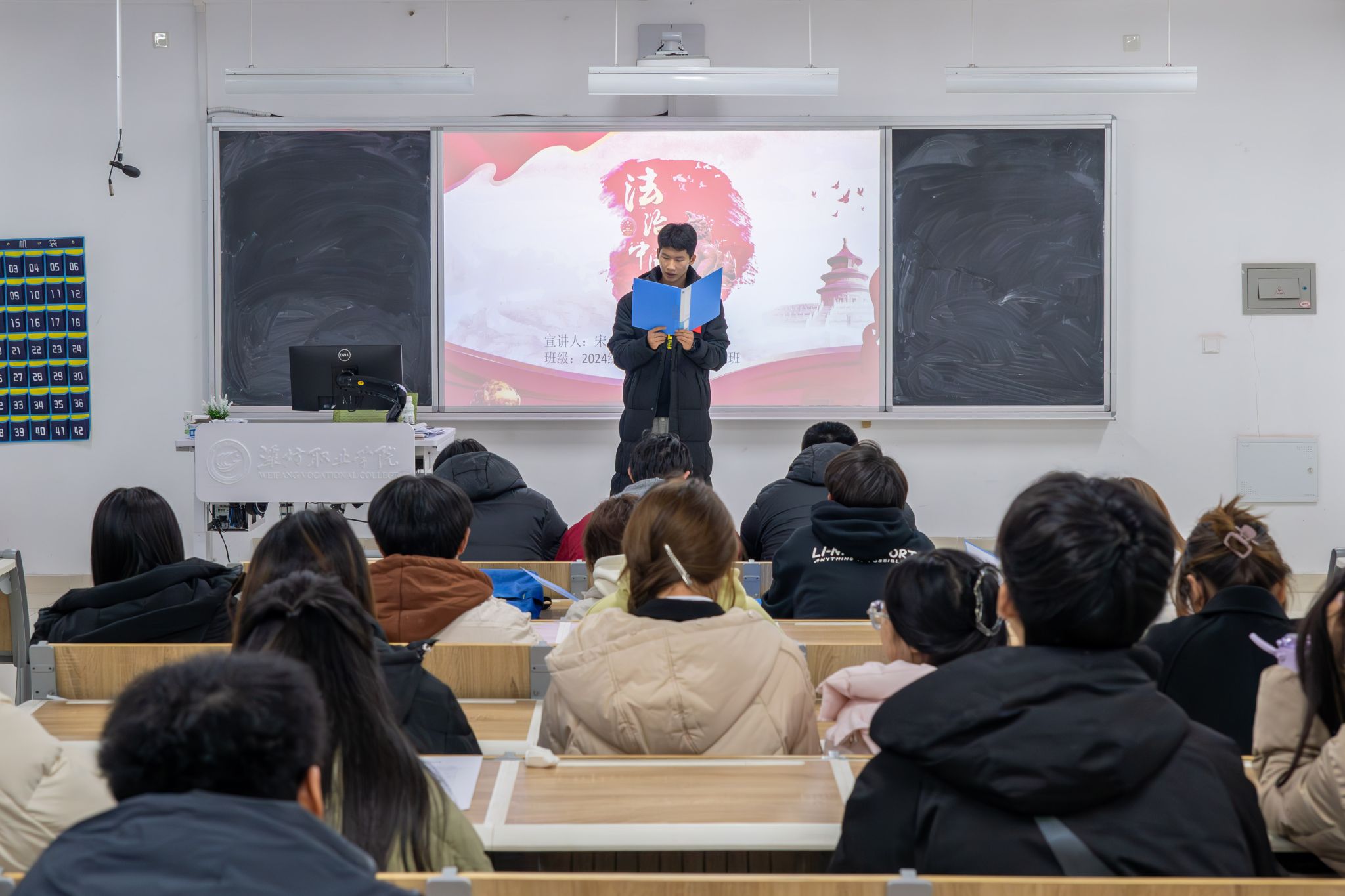 为积极响应山东省法治教育宣传月号召,增强学院法治教育宣传,全面推动学院文明修身工程建设,加深同学们对宪法精神的理解与认同,营造“尊法学法、守法用法”的校园风尚。信息工程学院于12月25日组织开展宪法诵读比赛。比赛中,选手们以坚定而又有力的声音,诵读着宪法条文以及与宪法精神相关的诗歌、散文,引经据典,深入浅出地宣传宪法精神、诠释对宪法精神的理解、深化对宪法条文的认知。每一次诵读,都展现了信息学子对法治社会的坚定信仰与执着追求。...更多 -