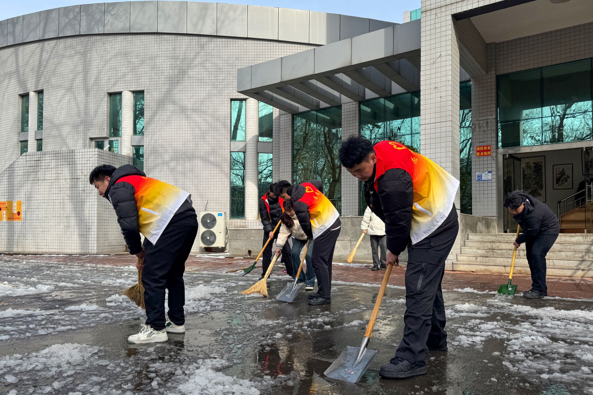 3月3日,潍坊突降瑞雪,皑皑白雪装点校园的同时,湿滑路面给师生出行带来隐患。为保障在校师生出行安全,文化创意学院学生党支部在奎文校区组织开展了“冰雪先锋行,学路映党辉”主题党日活动。文化创意学院学生党支部30余名师生主动集结,成立“扫雪先锋队”,利用课余时间对教学楼主干道、台阶及斜坡区域展开义务清扫。大家不惧严寒,分工明确,先是用扫帚清扫积雪,然后用铁锹铲除冰层,最后将清理出的冰雪运送到指定地点。在除雪过程中,...更多 -