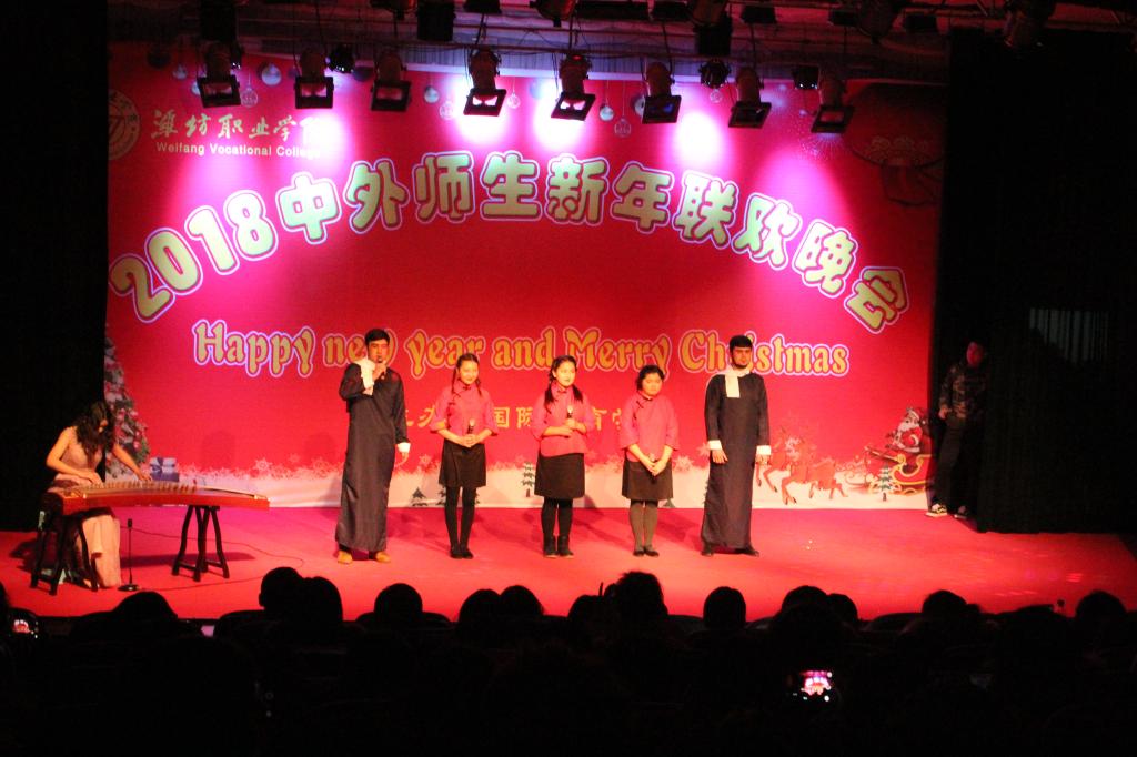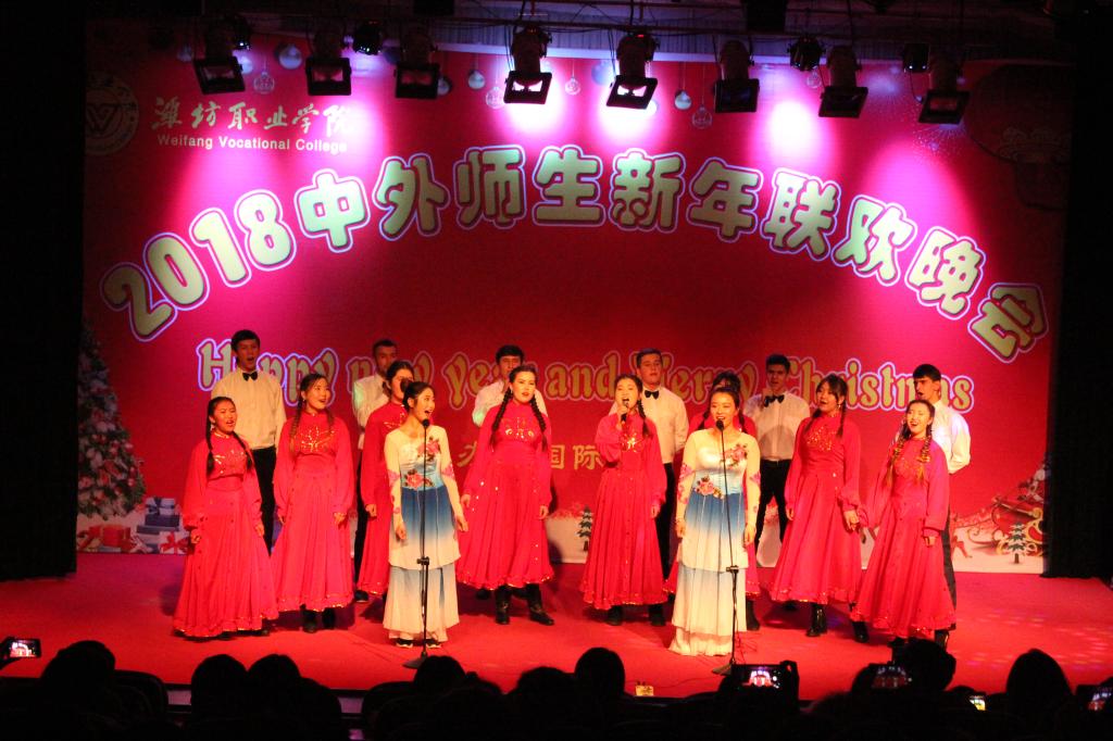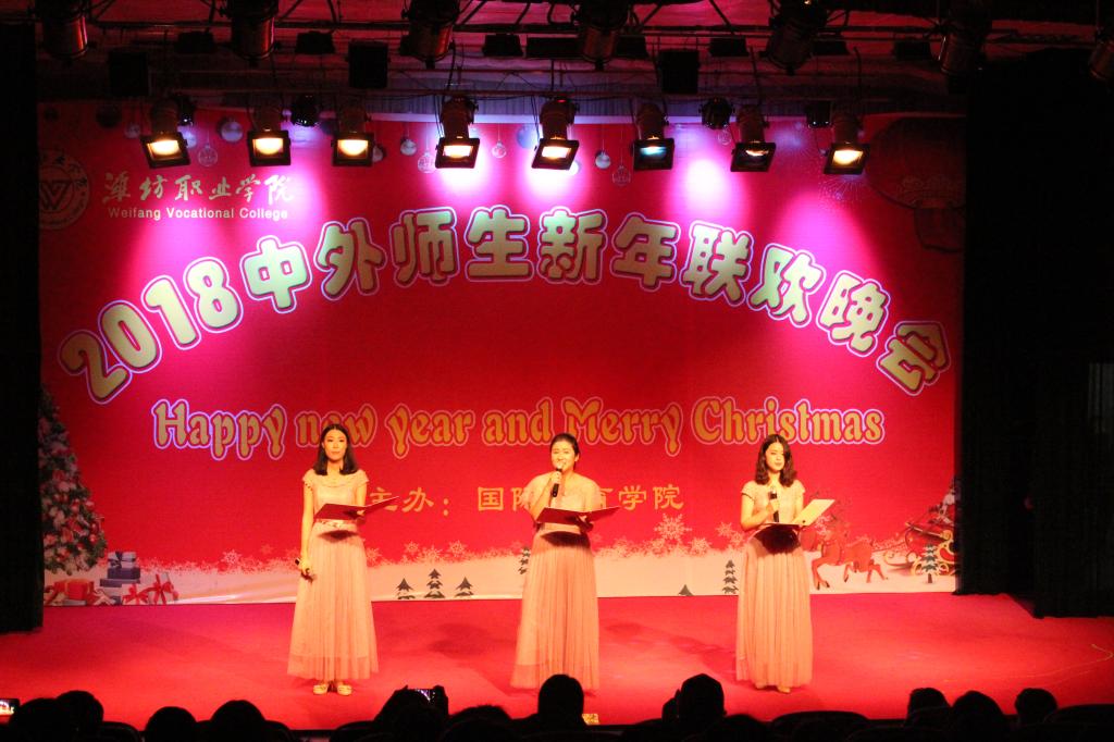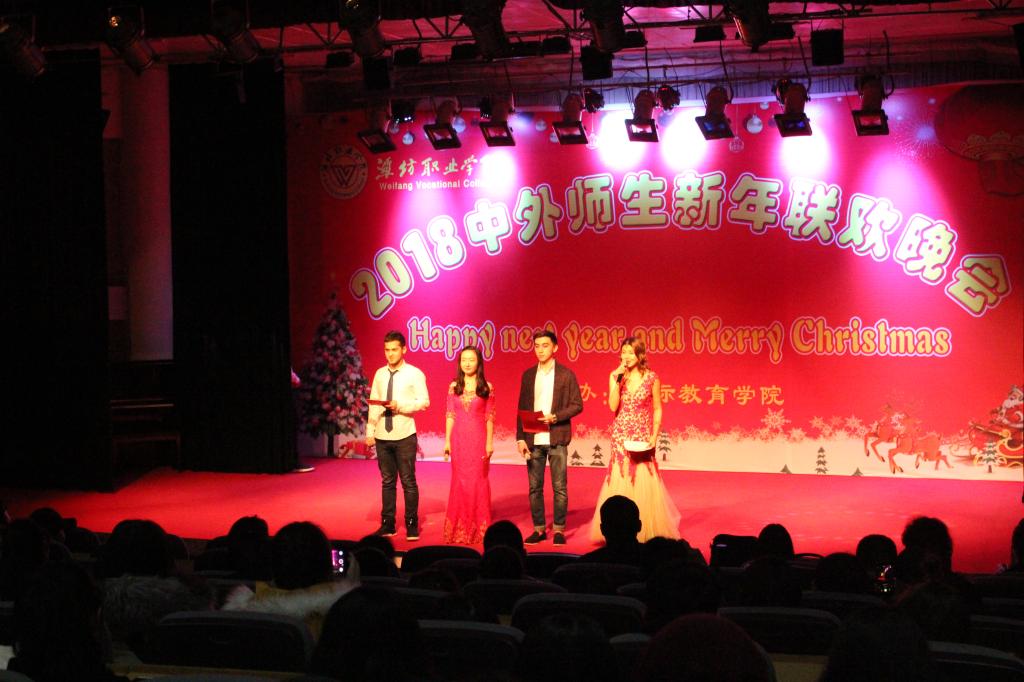 12月24日晚,beat3652018年中外师生新年联欢晚会在奎文校区报告厅举行。学院副院长赵君堂,相关部门、各二级学院负责同志与中外师生500余人欢聚一堂,共度平安夜,喜迎新年。