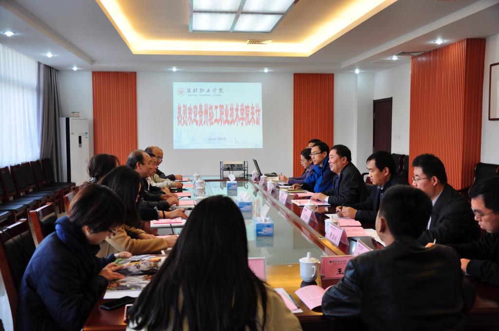 11月13日下午,贵州轻工职业技术学院副院长刘天德一行9人来beat365考察交流。学院党委副书记宋桂言在会议室会见客人。组织人事处、学生工作处、基建处、安全保卫处、食品药品学院、化学工程学院相关负责同志参加座谈。