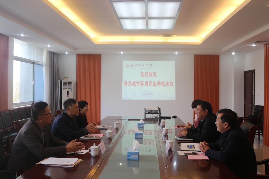 11月7日上午,青岛城市管理职业学校校长赵芳亮,副校长杨淑英一行3人来beat365就合作办学相关事宜进行考察交流。院长王家爱在会议室接见客人。教务处、招生就业处负责同志参加座谈。