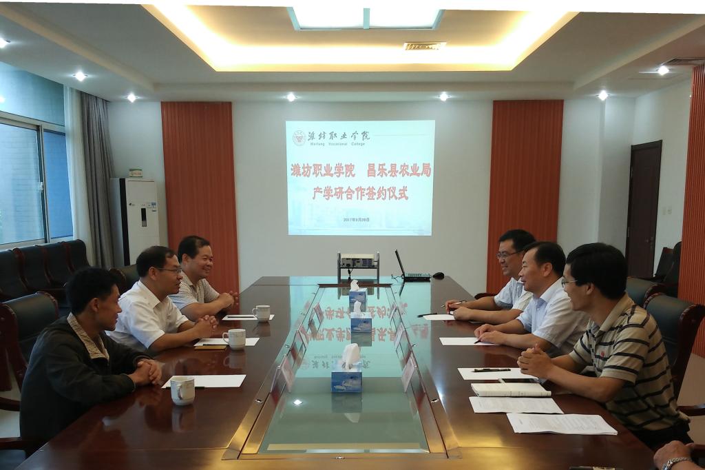 9月26日,昌乐县农业局党委副书记杨金学一行3人来beat365访问,副院长贺志强接见了客人,并出席签约仪式,科技处、农林科技学院负责人参加会议。