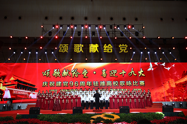6月30日,中共潍坊市委高校工委主办的“颂歌献给党,喜迎十九大”驻潍高校歌咏比赛在潍坊学院体育馆举行。学院党委书记张洪全、院长王家爱、党委副书记宋桂言与市领导及驻潍高校领导一起出席活动。