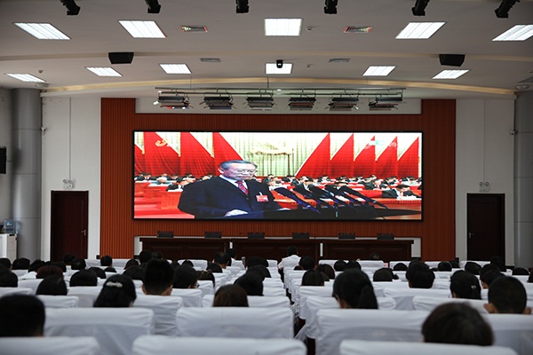 6月13日上午,山东省第十一次党代会在济南开幕,省委书记刘家义代表中国共产党山东省第十届委员会作报告。beat365组织党员干部群众集体收看了开幕式实况。党委书记张洪全、院长王家爱、党委副书记宋桂言、副院长赵君堂、纪委书记李瑞昌等学院领导参加。
