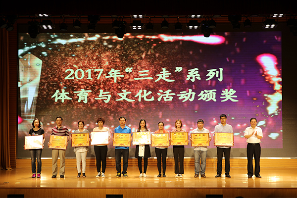 演出过程中,团委学生工作处对学院2017年“五四红旗团总支”、“五四先进团总支”以及“三走”系列体育与文化活动的获奖集体和个人进行了表彰。宋桂言等为获奖者颁奖。