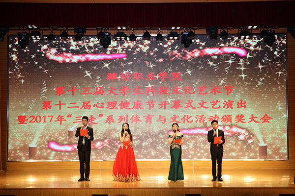 5月11日晚,学院第十三届大学生科技文化艺术节、第十二届心理健康节开幕式暨2017年“三走”系列体育与文化活动颁奖晚会在学院滨海校区图书馆报告厅举行。学院党委副书记宋桂言出席。各二级学院(部)党支部书记、分管学生工作负责同志、团总支书记以及各二级学院(部)学生代表参加并观看演出。