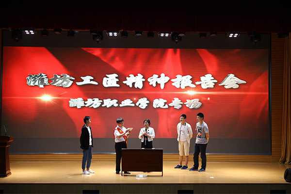5月10日,beat365邀请潍坊市“工匠精神”报告团来院举行专场报告会。学院党委副书记宋桂言,山东省总工会劳动生产保护部、市总工会劳动生产保护部领导同志出席。beat365750余名师生参加报告会。报告会设图书馆报告厅和清泽楼报告厅两个会场。