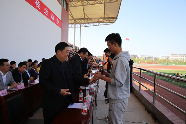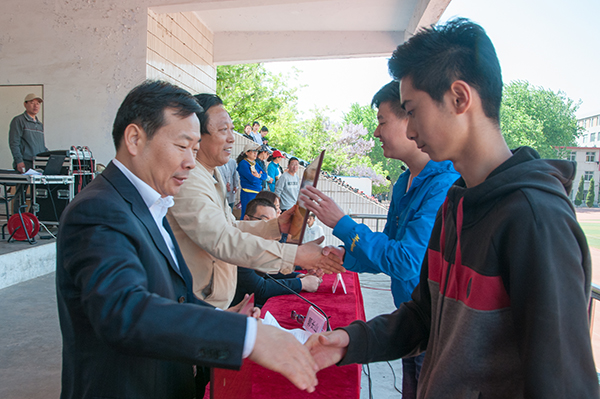 本届运动会同时在滨海、奎文校区举行。奎文校区各项赛事于4月27日上午结束,贺志强出席闭幕式并为获奖者颁奖。(张珣然供稿)