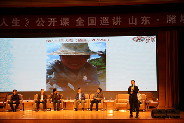 此次公开课在全国高校巡回开讲,旨在加强草根创业团队与青年学生们面对面的互动交流。公开课上特别邀请了大学生创业的成功典范“草根工匠”极创机器人公司创始人董大鹏、“舌尖女神”老叁屋餐饮有限公司CEO李艳香做精彩演讲。潍坊滨海教育投资集团常务副总经理许京波、新道科技股份有限公司合伙人、国际设计思考学会认证师宋国荣作了精彩点评。(娄建玮供稿)