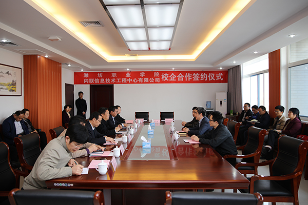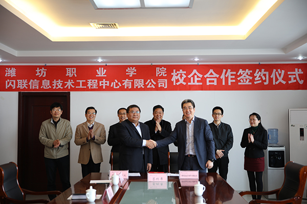 3月23日,学院与闪联信息技术工程中心有限公司签署校企合作协议,校企双方将成立“闪联特色班”,共建闪联物联网创新应用中心,在人才培养、师资队伍建设、科技研发、社会服务等方面开展全方位的战略合作。学院党委书记张洪全、院长王家爱、副院长赵君堂,科技处、教务处、信息工程学院等部门负责人和教师代表,闪联信息技术工程中心有限公司总裁孙育宁、总监孙志勇等参加了签约仪式。
