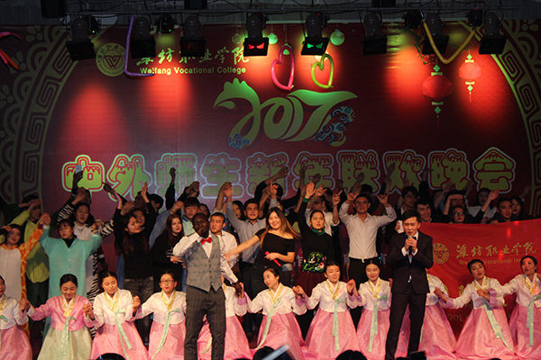 12月27日晚,beat3652017年中外师生新年联欢晚会在奎文校区报告厅举行。奎文校区办公室、五年制高职部、国际交流与合作处的相关负责同志,以及新加坡商会驻潍企业代表、美国外教及中外师生500余人欢聚一堂,共同观看了晚会演出。