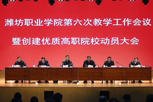 学院第六次教学工作会议暨创建优质高职院校动员大会,12月16日上午在滨海校区图书馆报告厅隆重开幕。学院党委书记张洪全,院长王家爱,党委副书记宋桂言,副院长赵君堂、贺志强,纪委书记李瑞昌出席会议。全院副科级以上干部和教学部门教师代表参加会议。大会会期一天,在奎文校区设立分会场。