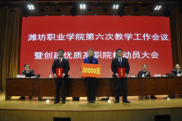 张洪全作总结讲话。张洪全要求,各部门要学习、贯彻、落实好会议精神,深刻领会贺志强副院长的教学工作报告和王家爱院长的讲话精神,结合各自实际情况,认真研究制定具体工作方案措施,把会议提出的工作目标任务落到实处。要大力表彰宣传先进事迹和人物,在全院形成学先进、赶先进的良好氛围,努力建设好学院的学风、教风和校风。要把教学工作作为创建优质高职院校的中心环节,坚持立德树人,不断改革创新,努力提高教育教学水平和人才培养质量。张洪全指出,今天的动员大会后,我们要明确目标,凝聚力量,积极投入到创建优质高职院校工作中。全院上下要以这几年建设滨海校区、创建山东名校激发出来的干事创业精神为动力,统一思想,增强信心,鼓足干劲,奋力拼搏,实现创建目标,圆我们的“潍职梦”,迎来beat365中国官方网站光辉灿烂的明天。(张珣然供稿)