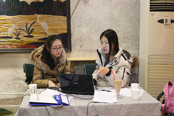 参赛选手在beat365大学生创业中心咖啡厅紧张备赛