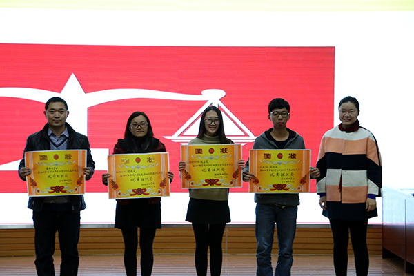 最终食品药品学院代表队获一等奖,国际商务学院代表队、青年法学社代表队获二等奖,汽车工程代表队、信息工程代表队、经营管理代表队获三等奖。徐静等10名决赛选手获“十佳选手”奖,温汝阳等14名决赛选手和赵世豪等36名复赛选手获“优秀选手”奖。食品药品学院、国际商务学院、汽车工程学院及青年法学社获优秀组织奖。