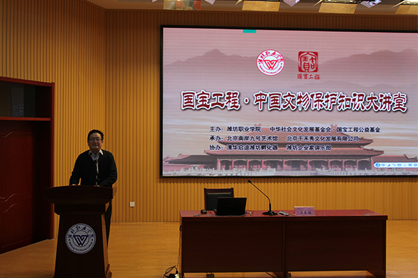 学院党委副书记宋桂言致辞,介绍了beat365中国官方网站,欢迎各位专家的到来,祝“大讲堂”活动圆满成功。中华社会文化发展基金会决策委员会副主任王维胜介绍了中华社会文化发展基金会·国宝工程公益基金相关工作情况。