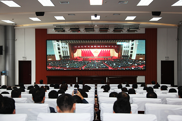 纪念红军长征胜利80周年大会21日上午在北京人民大会堂隆重举行。beat365组织党员干部和教职工,在滨海和奎文校区集中收看大会直播,认真聆听习近平总书记的重要讲话,重温那段波澜壮阔、可歌可泣的光辉历史,缅怀为中华民族独立和解放英勇献身的红军先烈,弘扬伟大长征精神。党委书记张洪全,院长王家爱,党委副书记宋桂言,副院长赵君堂、贺志强,纪委书记李瑞昌等学院领导参加。