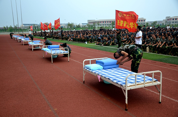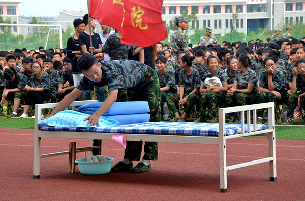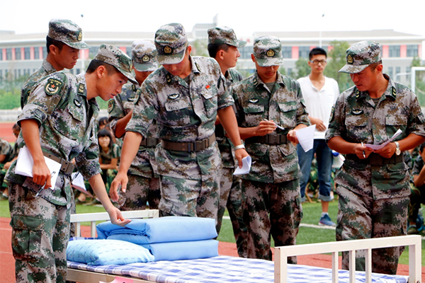 9月11日下午、12日,学院2016级新生军训内务比赛分别在滨海校区和奎文校区体育场举行。军训团各营营长及教官代表担任比赛评委。两校区全体新生观看了比赛。
