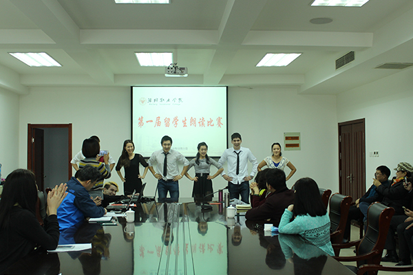 比赛分为初级组和中级组。留学生们赛前做了精心的准备,纷纷请各自指导老师辅导朗读技巧、纠正发音,并在课余时间反复练习。演讲中,学生们都穿上了正式的服装,有的还匠心独具,配上了动听的音乐,展示出了自己的最高水平和风采。任课教师为学生带来了精彩的朗诵,赢得了同学们热烈的掌声。学生们还表演了别具特色的民族舞蹈。