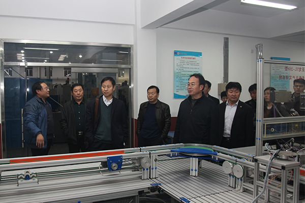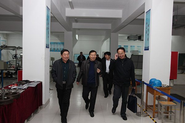 鹿忠勤一行参观了学院实训室和实训车间。(杨晓华供稿)