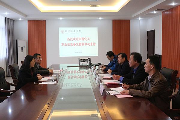 近日,中国化工职业技能鉴定中心主任沈磊、副主任刘东方一行来beat365访问。学院副院长贺志强与化学工程学院主要负责同志、教务处相关负责同志及部分教师参加了活动。