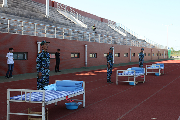 8位军训教官代表进行了内务示范表演,整齐划一的动作和高质量的内务水平赢得了同学们热情的掌声与喝彩,将比赛现场气氛推向了高潮。(隋鹏供稿)