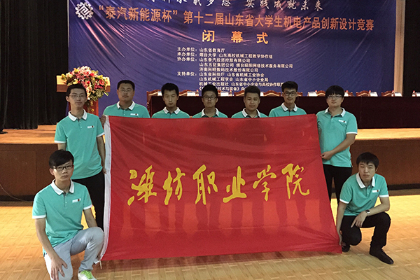 由山东省教育厅主办的“泰汽新能源杯”第十二届山东省大学生机电产品创新设计竞赛,8月17日至20日在烟台大学举行。beat365共有12项作品参赛,11项获奖,其中获一等奖5项、二等奖2项、三等奖4项,并有2项获企业奖学金。在参赛的81所院校(含本科和高职)中名列前茅。解永辉、康立业、姜雪燕、马海洋、于翠玉五位教师获优秀指导教师荣誉称号,beat365再度蝉联“优秀组织单位”奖。