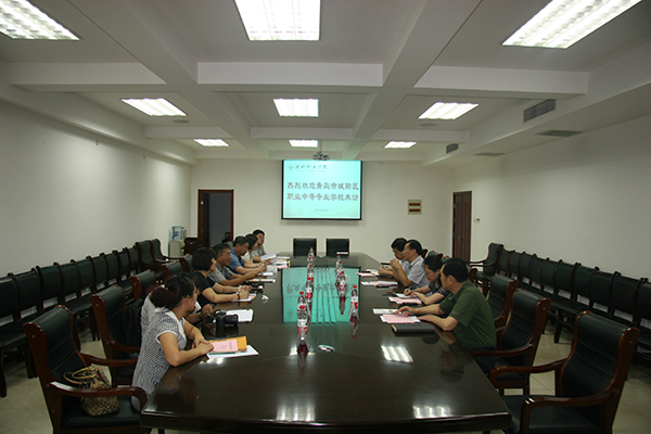 8月13日,青岛市城阳区职业中等专业学校刘同珂校长一行7人来beat365考察交流。副院长贺志强在会议室会见了客人,教务处、招生就业处、汽车工程学院负责同志参加座谈。