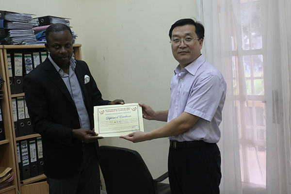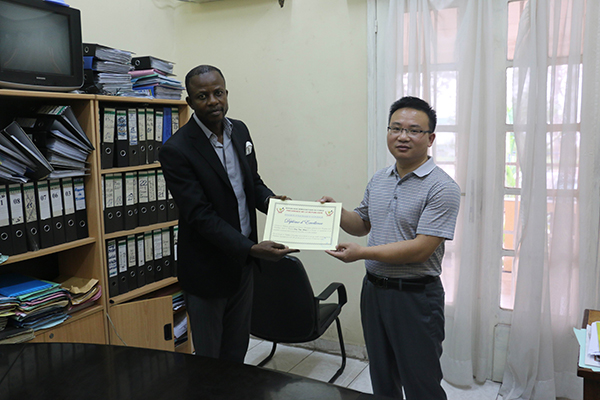 2009年至2013年,学院两度选派专家远涉非洲,承担国家商务部援非项目,圆满完成了中国政府援刚果(金)恩赛莱旱作物示范项目任务。2013年初,学院应刚果(金)政府部门再次邀请,经过双方沟通协商,最终达成了“土壤肥力检测技术”联合研发的合作意向,拉开了第三次合作的序幕。2014年10月下旬,在潍坊市科技局、山东省科技厅等上级部门的大力支持下,学院申报的“中国与刚果(金)土壤肥力检测技术联合研究与开发”项目获批2014年度山东省对外科技合作项目立项,并获经费资助20万元,成为全省职业院校唯一入选立项的项目。获批后,学院项目组积极制定实施方案,认真落实实施细节,购置了先进的仪器设备,并派遣农业专家远赴非洲开展实际工作。学院及其农业专家的有效工作获得了刚方政府部门、合作单位、当地民众及中国驻刚经商处的高度赞扬和肯定,学院任培华、邢同胜两位农业专家分别被刚果(金)总统府战略储备局授予“突出贡献外国专家”荣誉称号。(邢同胜 任培华供稿)