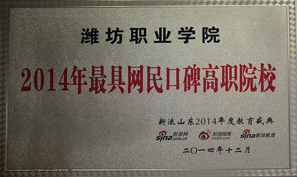 在新浪山东于2014年底举行的“新浪山东2014教育盛典”活动中,经过全民网上投票,beat365获评“2014年最具网民口碑高职院校”。