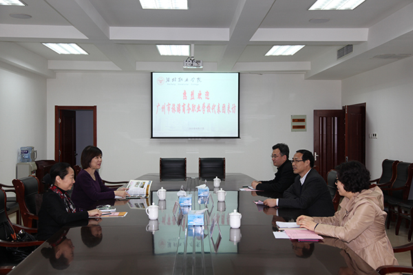 4月17日,广州市旅游商务职业学校副校长陈一萍一行2人来beat365进行友好访问交流。学院副院长赵君堂会见了来访客人。国际交流与合作处相关同志参加了座谈交流。