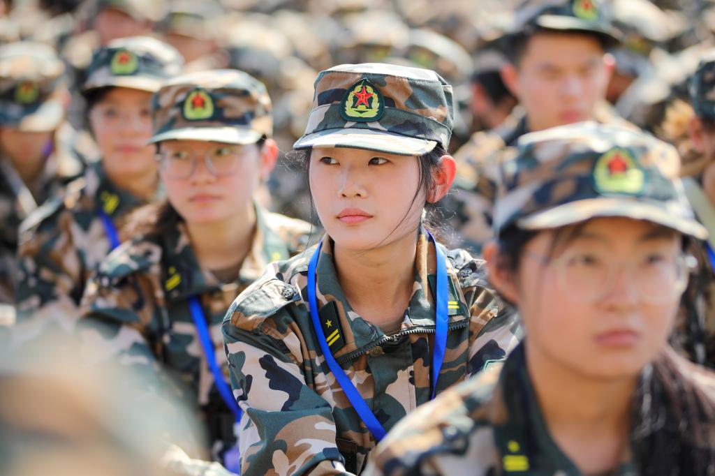 军训教官代表作动员发言。随后,军训教官进行队列展示。任培华宣布了学院2024年军训团任职令。(张爱玲供稿)