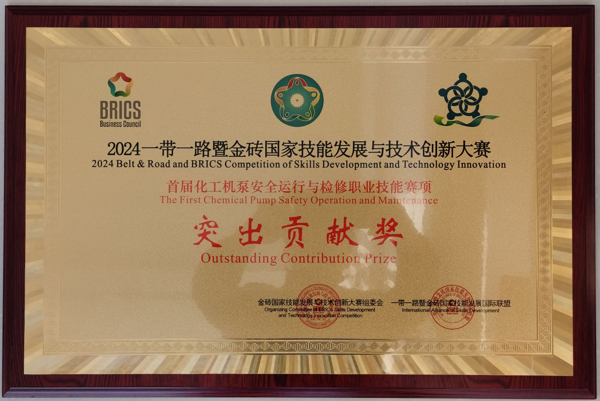 beat365参加2024一带一路暨金砖国家技能发展与技术创新大赛首届化工机泵安全运行与检修赛项获一等奖第一名