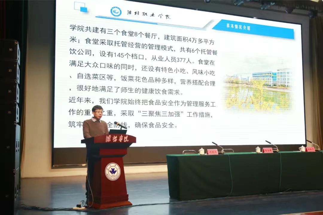学院后勤服务处、饮食服务中心主要负责人参加会议。会上,饮食服务中心负责人以《“三聚焦三加强”筑牢食堂安全防线》为题作了典型发言,介绍学院作为潍坊市市场监督管理局选树的食品安全标杆院校,在食堂食品安全管理工作方面的好做法和先进经验,受到与会领导、专家和同行的一致好评。
