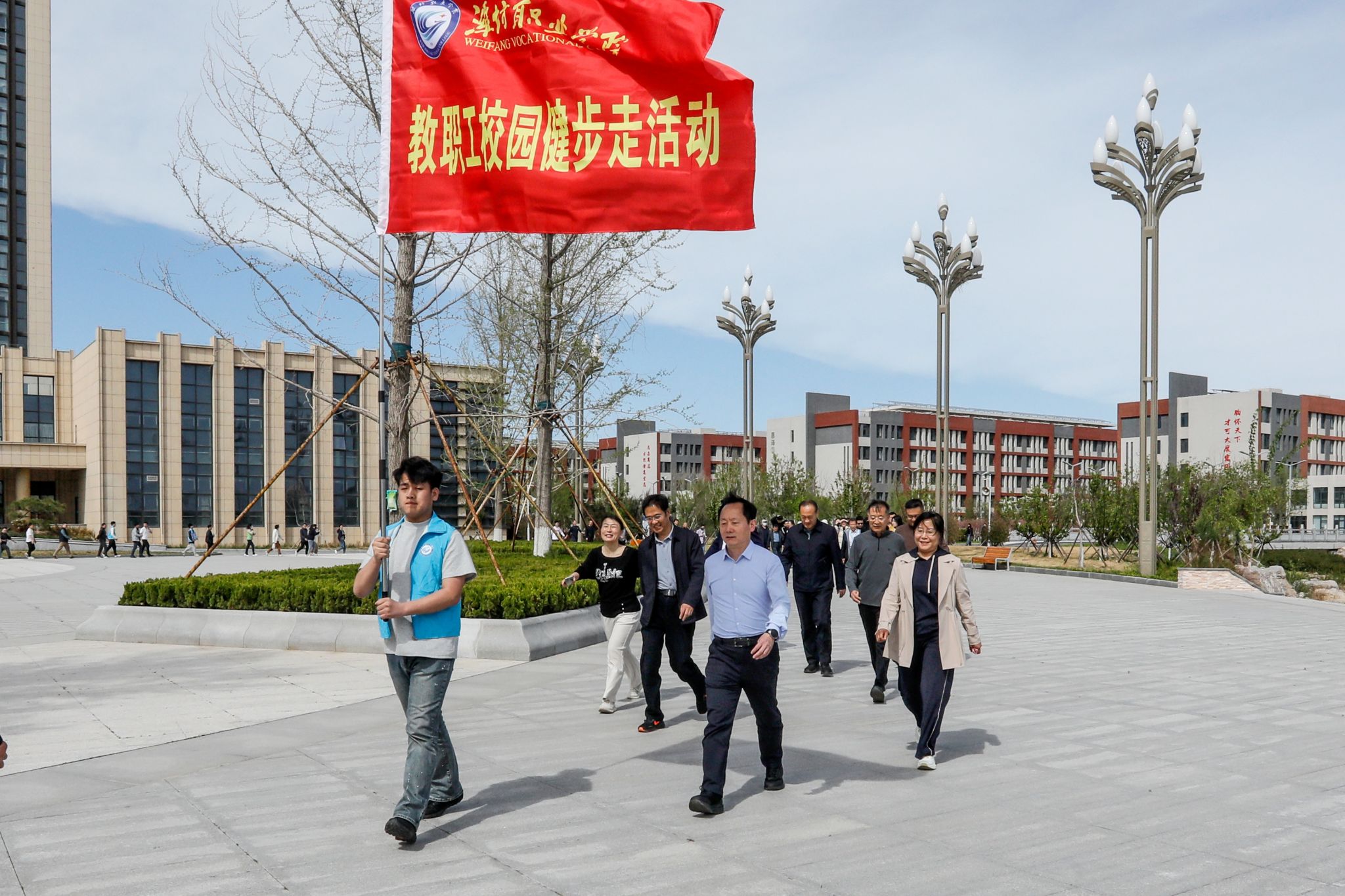 春风拂面,绿意盎然。为贯彻落实《全民健身计划(2021-2025年)》《健康中国行动(2019-2030年)》《进一步加强尊师惠师工作的若干措施》,倡导“快乐工作,健康生活”理念,引导健康工作生活方式,4月24日下午,学院在滨海校区南区、北区和奎文校区同步组织开展教职工校园健步走活动。学院在校党政领导班子成员与500余名教职工一同体验校园健步走的愉悦,感受春日生机勃发的美好。学院党委书记王浩为教职工健步走鸣枪发令。党委委员高凌云主持活动并作动员讲话。