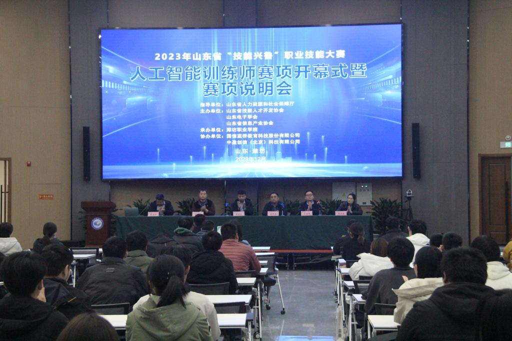 人工智能训练师竞赛由山东省技能人才开发协会主办,主要通过真实任务要求选手根据竞赛题目合理利用提供的人工智能训练师竞赛平台,实现人工智能技术在不同场景的应用,考察选手的综合职业能力,共有来自全省47支代表队参加。第五届山东省电子信息行业新技术应用职业技能竞赛人工智能训练师(智能安防技术应用)赛项由山东电子学会、山东省信息产业协会主办,主要考察选手在实际用户服务的工作场景当中,对应用场景故障处理、智能硬件物联网系统升级技术、智能家居硬件布控等多个核心工作任务的职业技能水平,共有来自全省37支代表队参加。